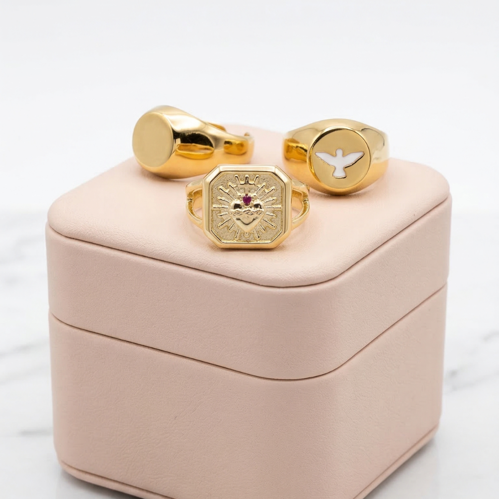 Peças banhadas a ouro 18k com símbolos de fé, proteção e propósito 🙏
