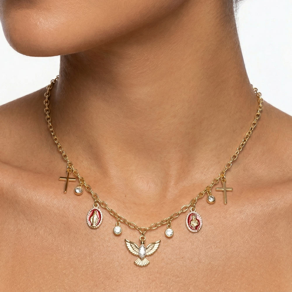 Nossos colares de São Bento, Nossa Senhora e Espírito Santo são verdadeiros símbolos de conexão espiritual — feitos pra te acompanhar em todos os momentos, te trazendo paz, força e aquela sensação boa de estar protegida 💫