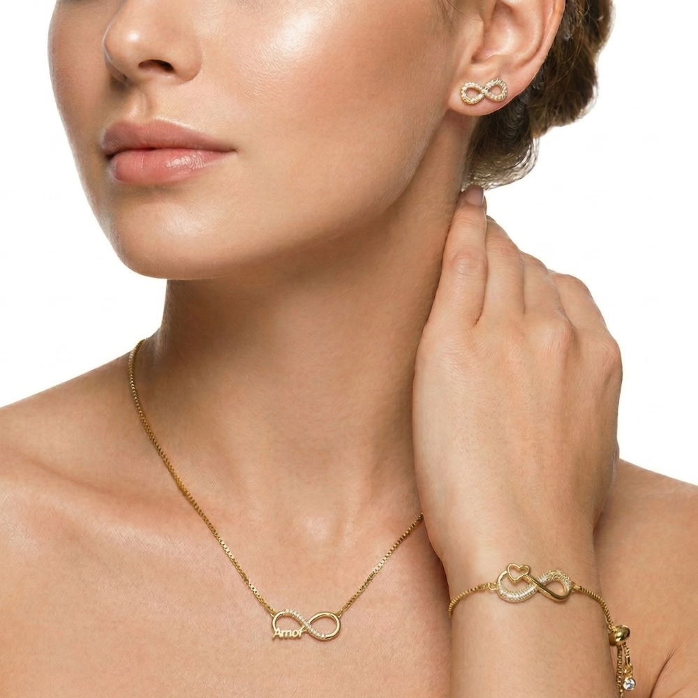 BELISSIMO E SIGNIFICATIVO CONJUNTINHO DELICADO E BANHADO A OURO 18K HIPOALERGICO